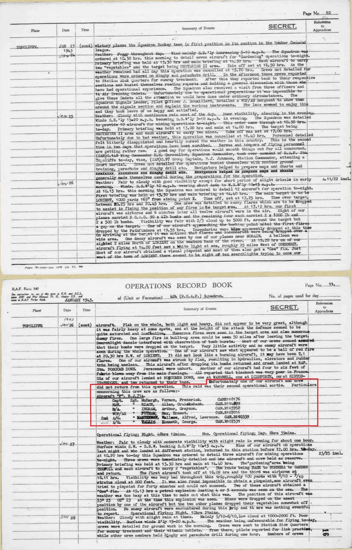 ♦ Operational Record Book du no 424 Squadron pour le 26 janvier 1943