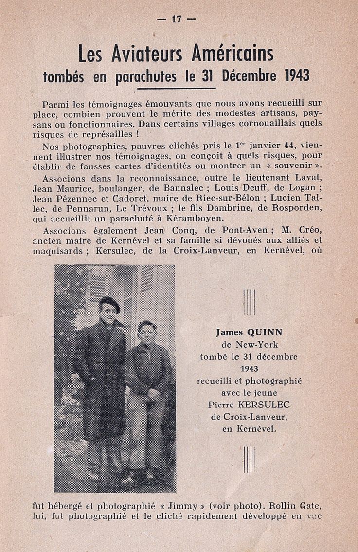 - (Radio operator) T/Sgt. James Nicholas "Jimmy" QUINN, service number 12090499, born on 18 February, 1921, New York City (USA), escaped.