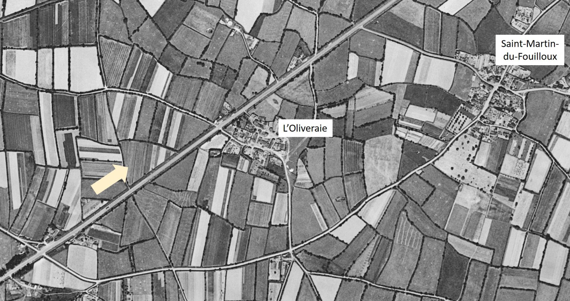 Le P-38 de Walter Pyron est tombé le long de la nationale 23, à proximité du lieu-dit l'Oliveraie (flèche)
