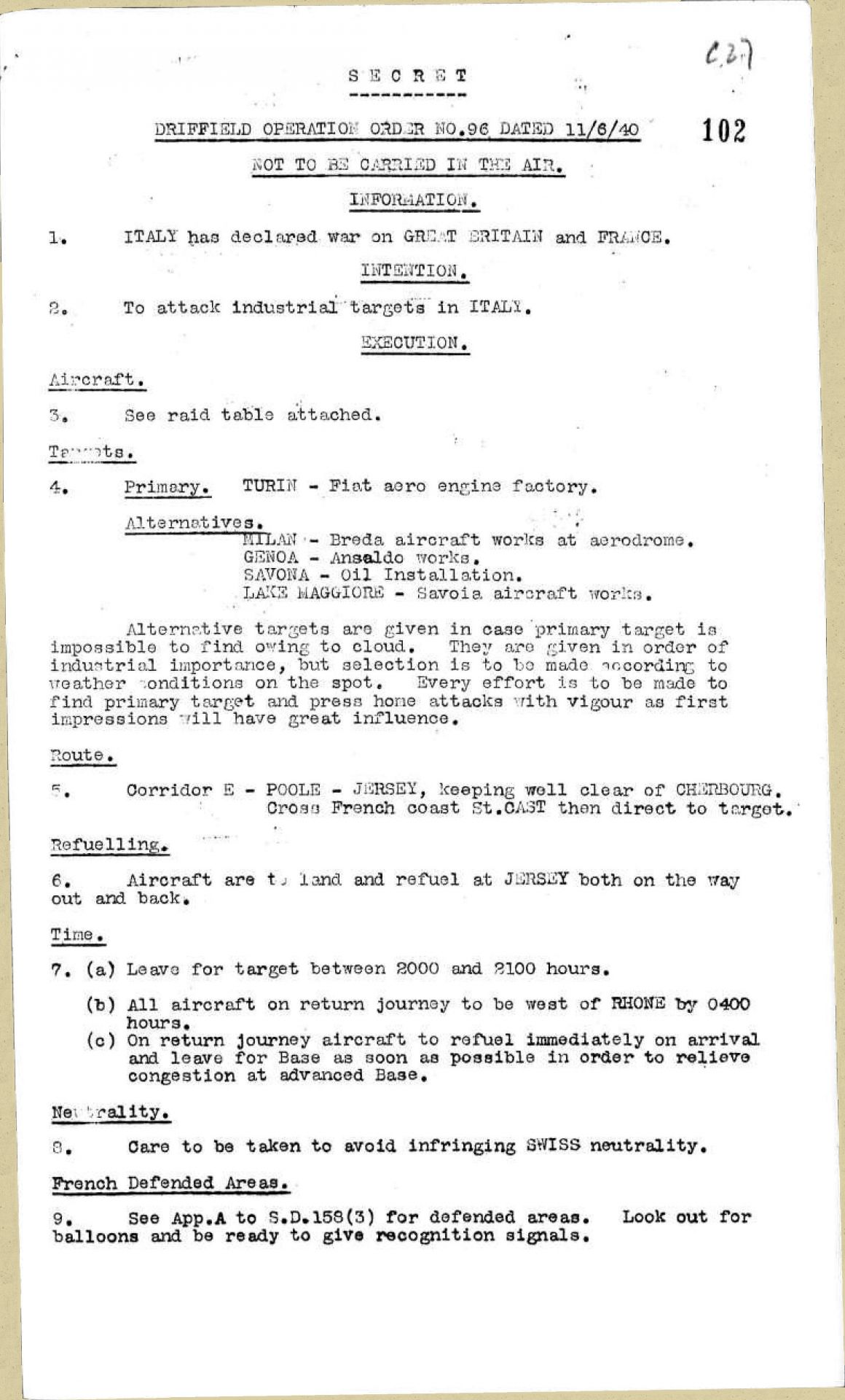 In this document, we read that Turin was the primary target, but that secondary targets had been defined :