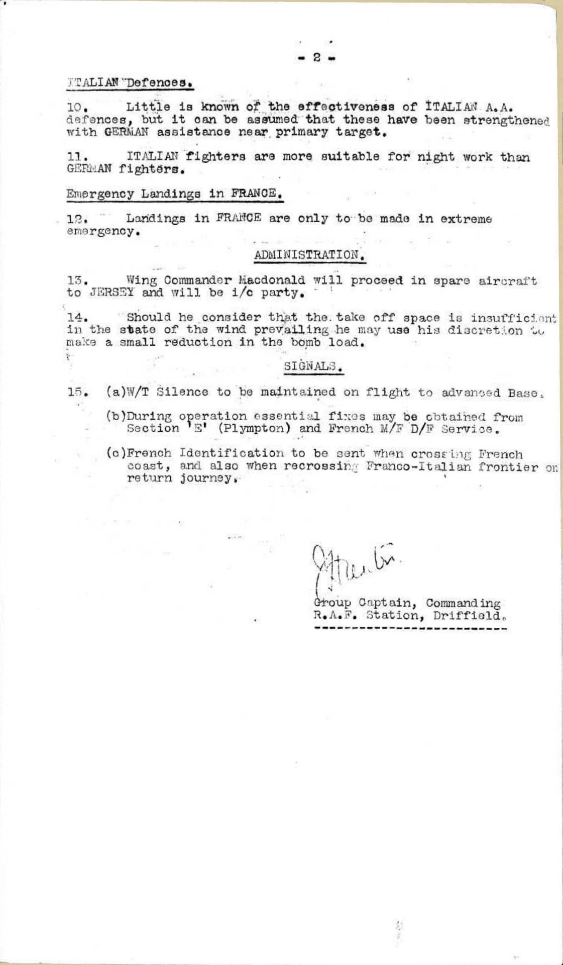 Takeoff at 2:00 PM from RAF Driffield, Yorkshire. The mission was to attack the Fiat works in Turin (Italy), via Jersey to refuel. The aircrafts were to fly from Driffield to Poole and then Jersey. All aircrafts arrived in Jersey and took off again from 8:00 pm at 10-minute intervals until 9:45 pm. They were to cross the French coast at Saint-Cast [de Guildo]. Due to icing problems at high altitude (above 10,000 feet), most of the crews experienced engine problems and the mission was not a success. The aircrafts also encountered electrical storms and intense flak on the target. Unfortunately, Sergeant SONGEST's crew was reported missing.