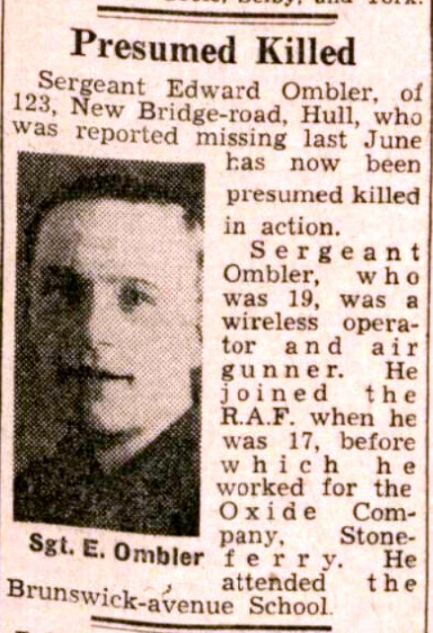 - Sergeant (Wireless operator/gunner) Edward OMBLER, 18 years old, killed.