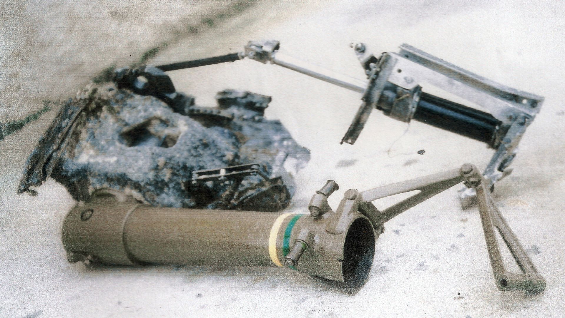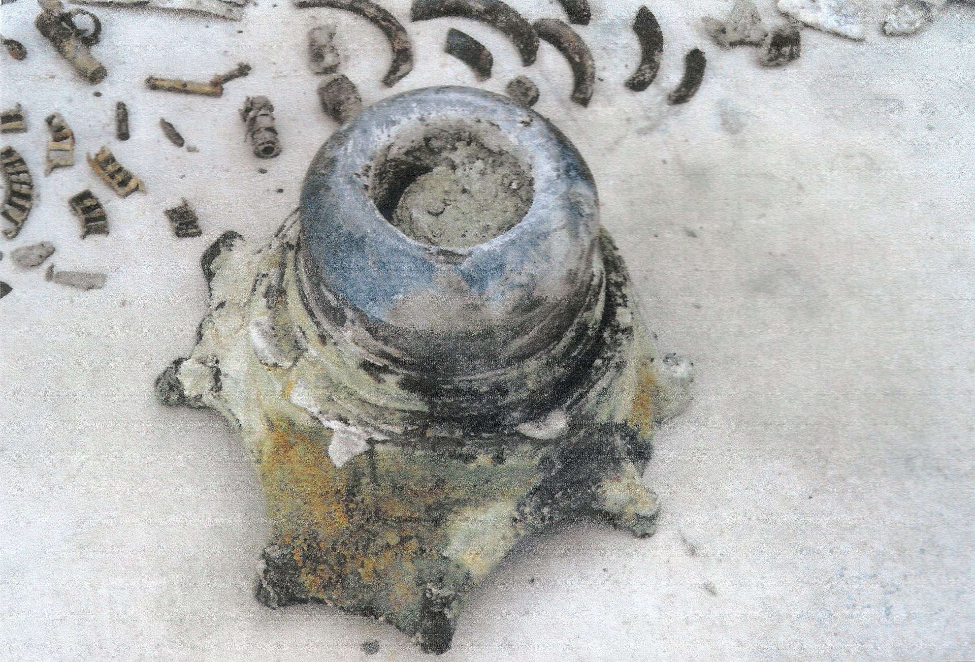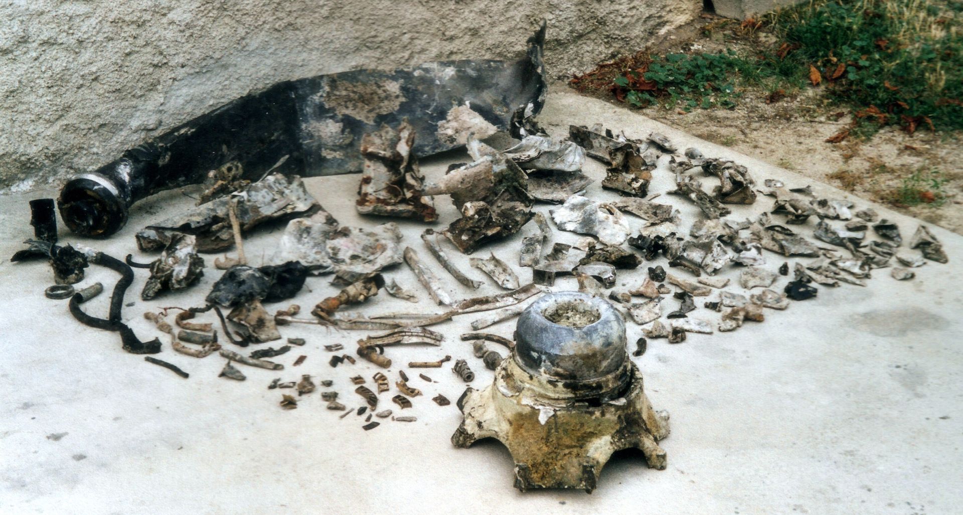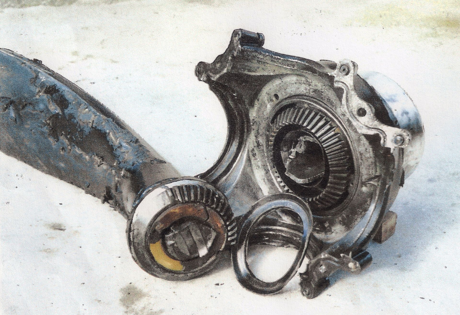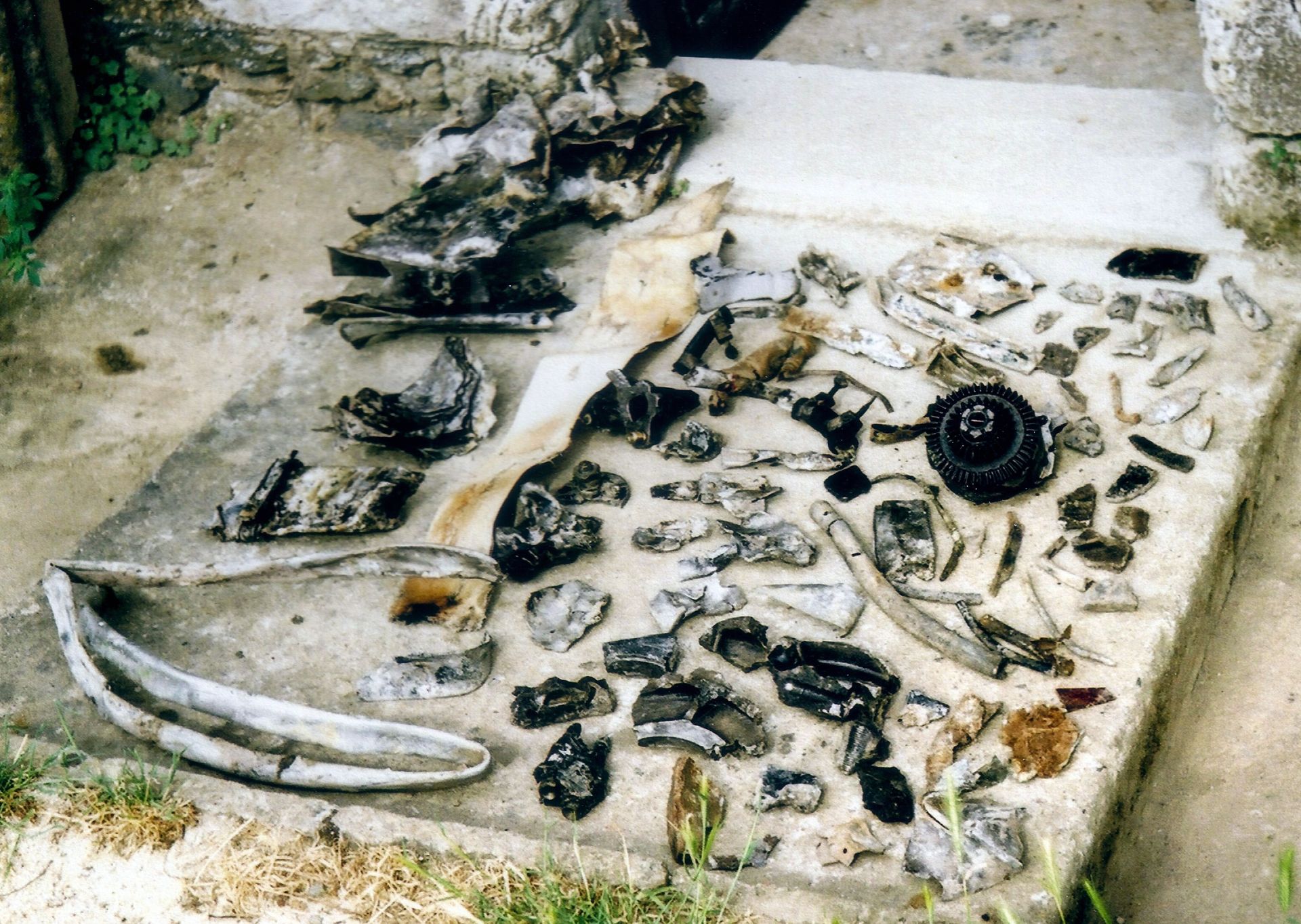 Numerous small metal pieces suggest a violent impact during the plane's crash.
